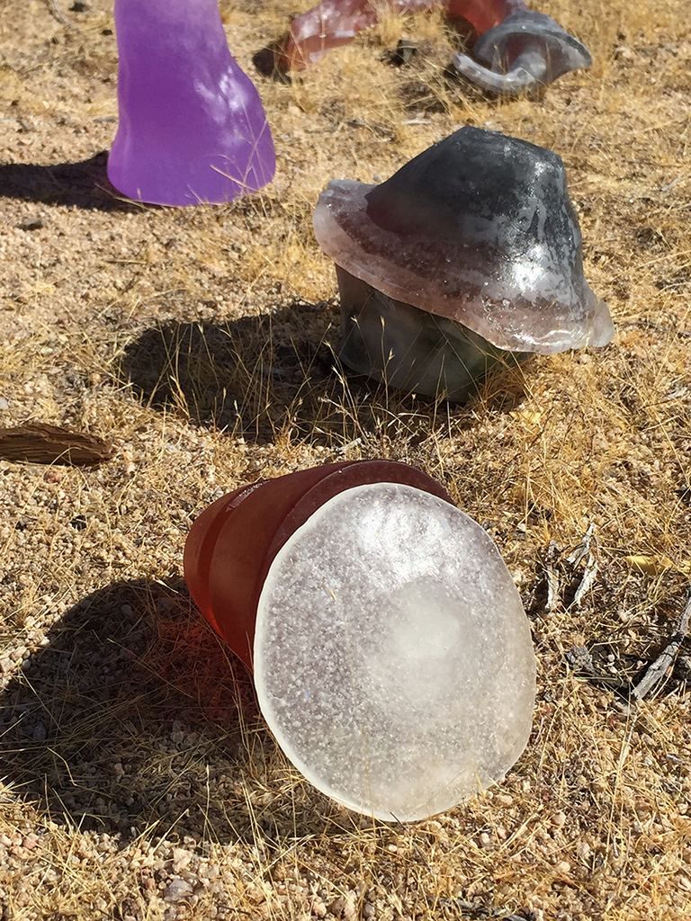 SWALLOWING SURFACES ; IF THEY SWELL. Glass casting. YUCCA VALLEY MATERIAL LAB.