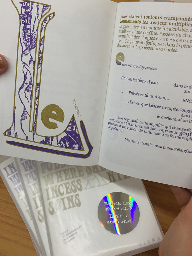 IN THESE WORRIED PUDDLES WHERE SHE INCESSANTLY SPINS - DANS CES FLAQUES INQUIÈTES OÙ ELLE TOURNE SANS CESSE. RISO PRINT. 70 EDITIONS. PUBLISHED BY TOMBOLO PRESSES.
