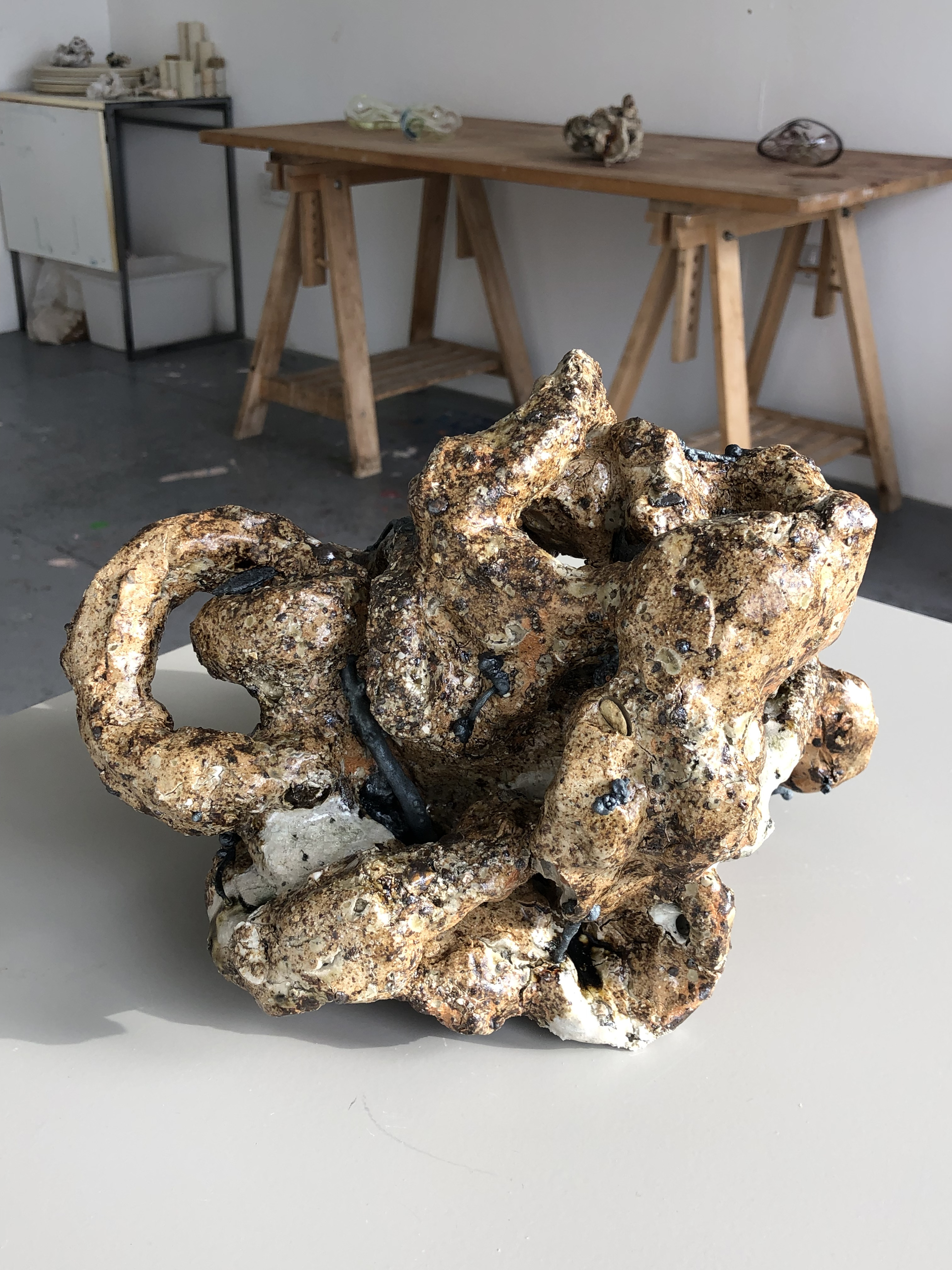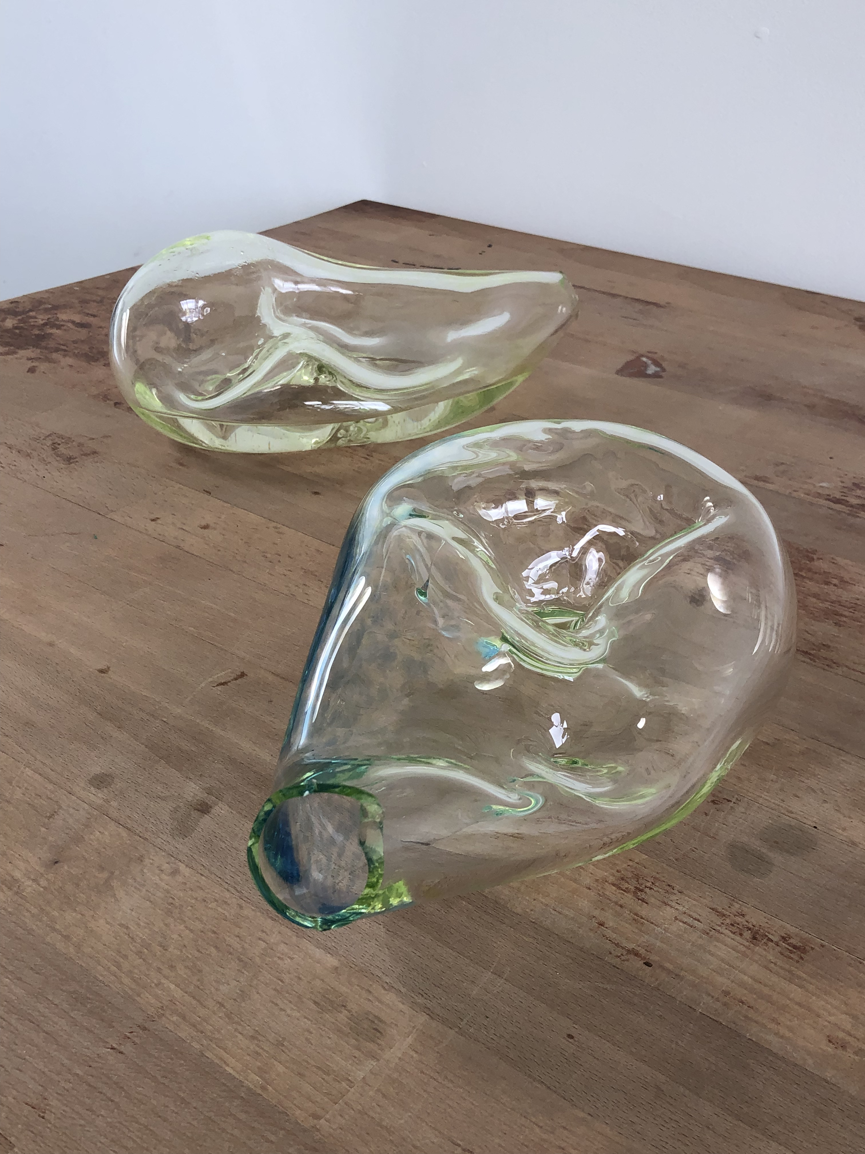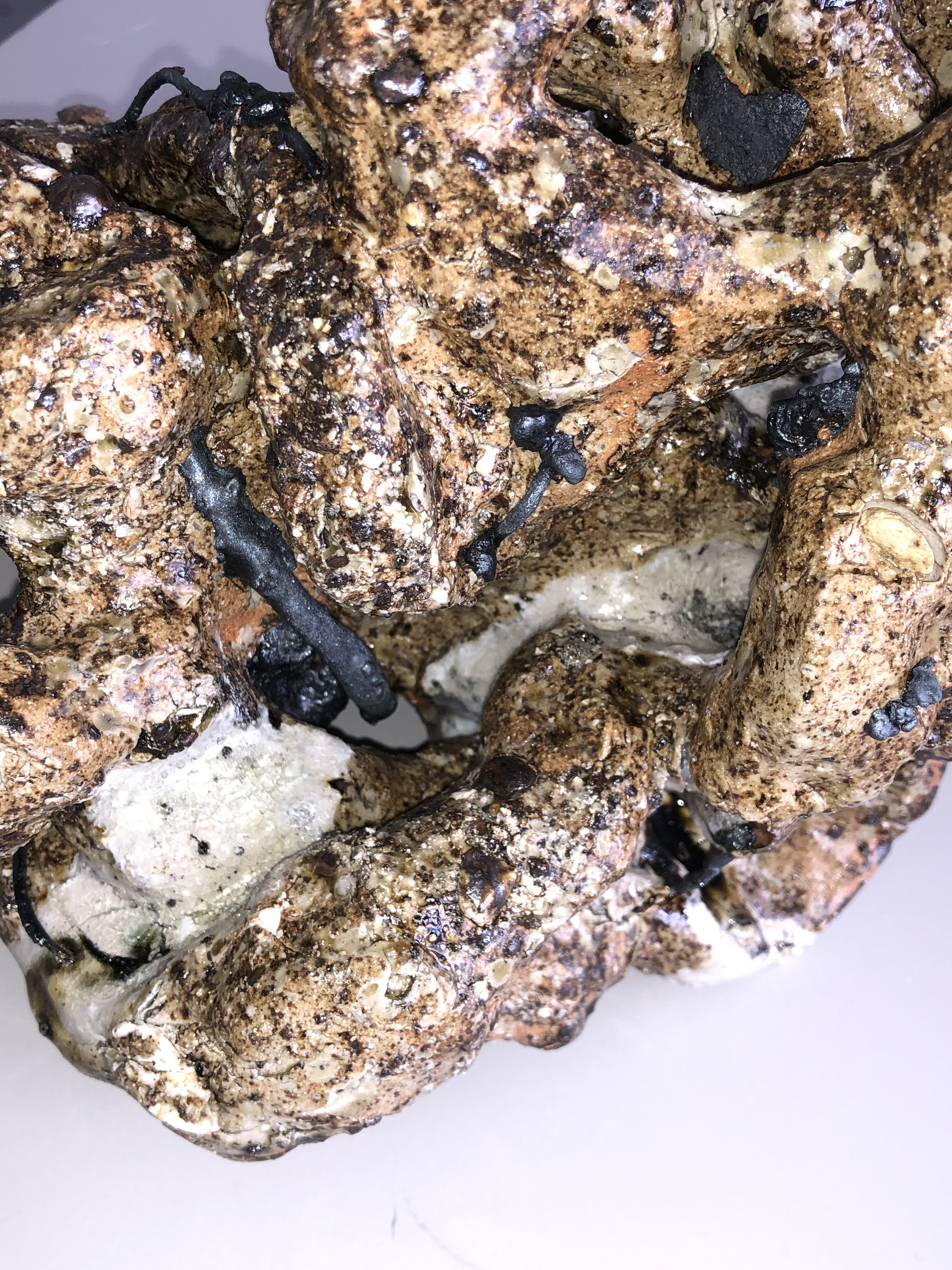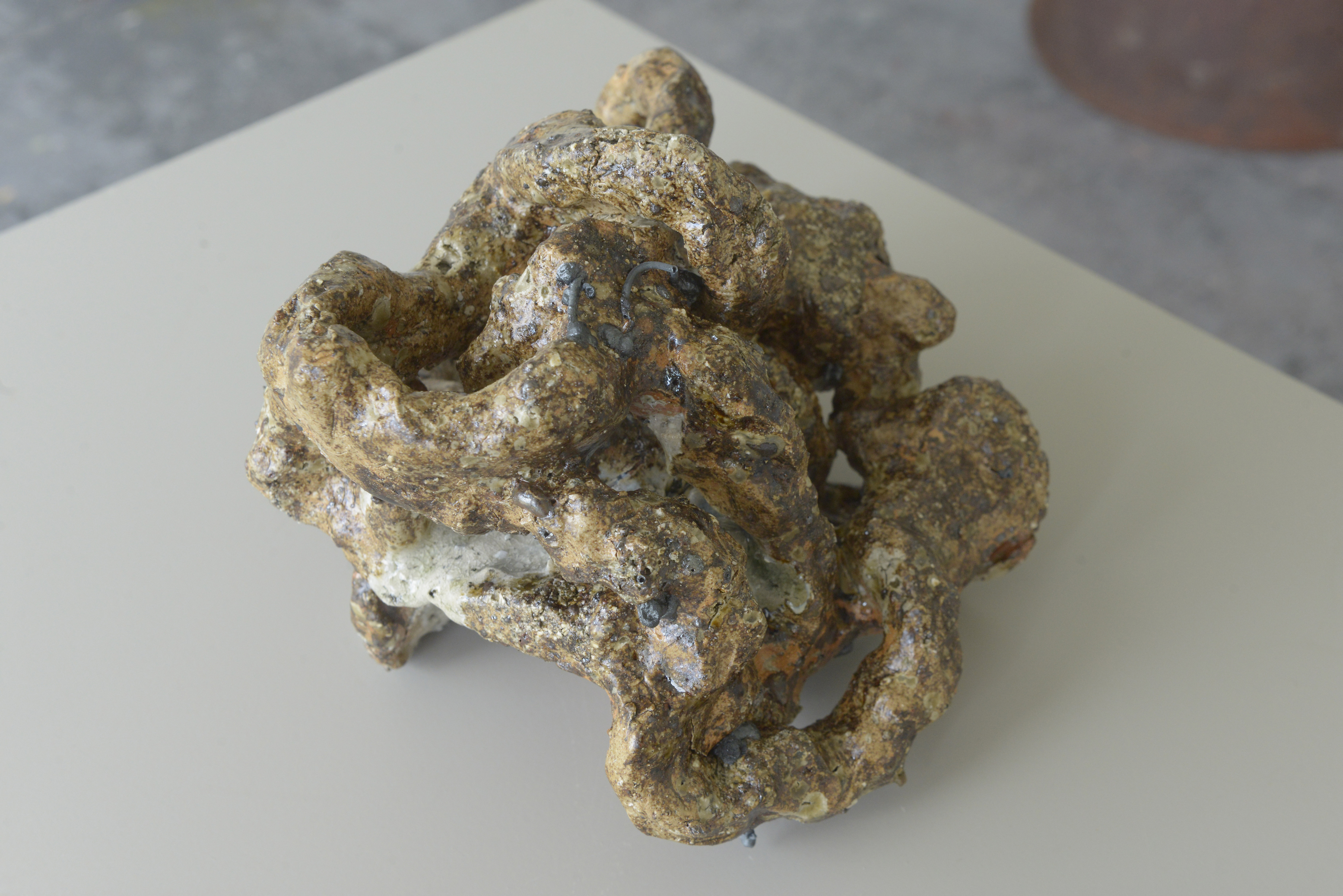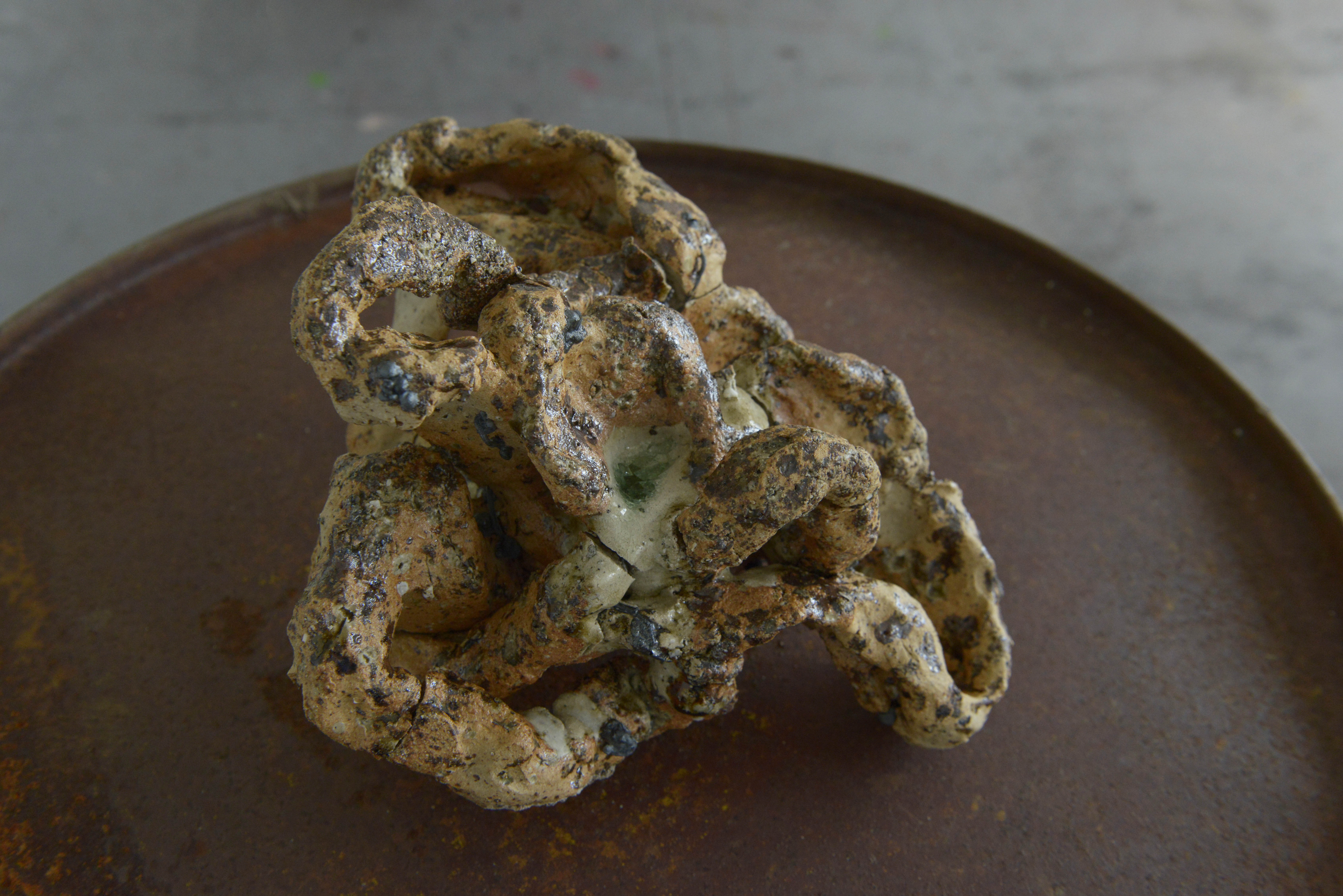 Laure’s current research on microbial memories stored in landscape and bodies raises questions about material flows, displacement and toxicity. Working in ceramics and glass, sediments from the loch have been indexed, fused or moulded with the debris of the compounds they contain, making their materiality, and for some their identity, visible through the transformation of heat. She has also experimented with a variety of glazes made from hyperaccumulator plants, a range of metals, and the remains of marine organisms. While the ceramic pieces reveal chemical residues, the glass pieces are imprints of loch waste, lost or mutagenic spaces.