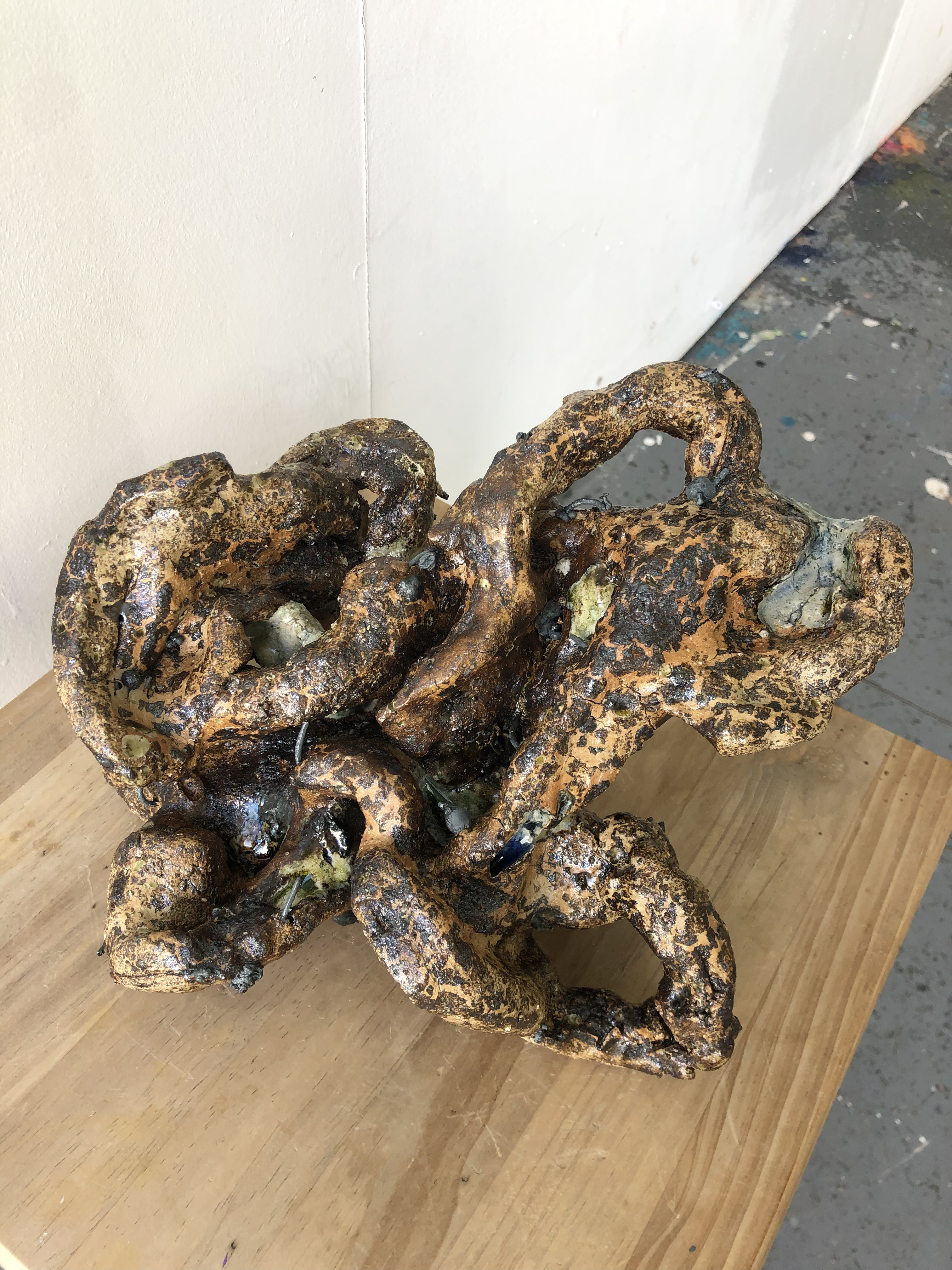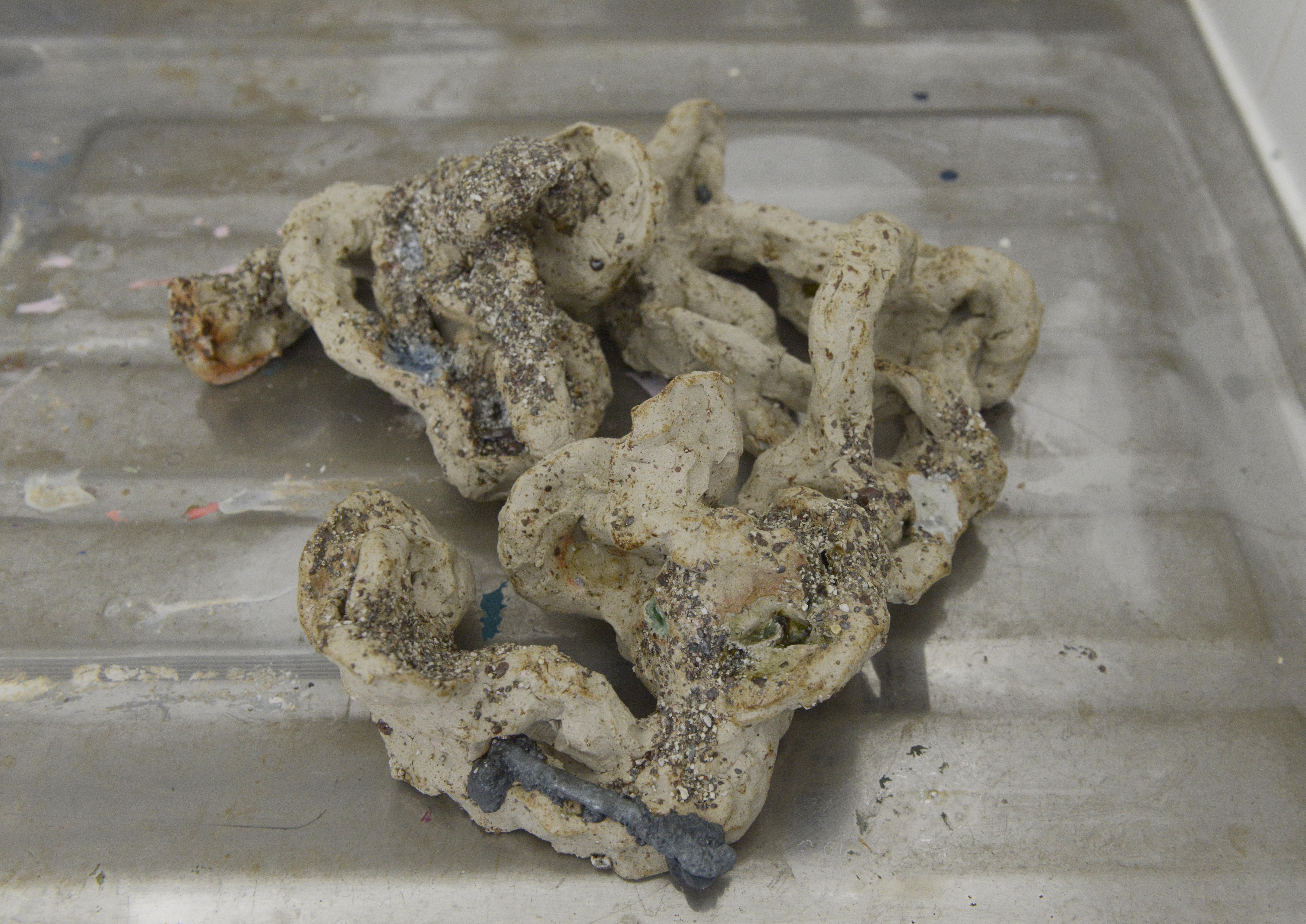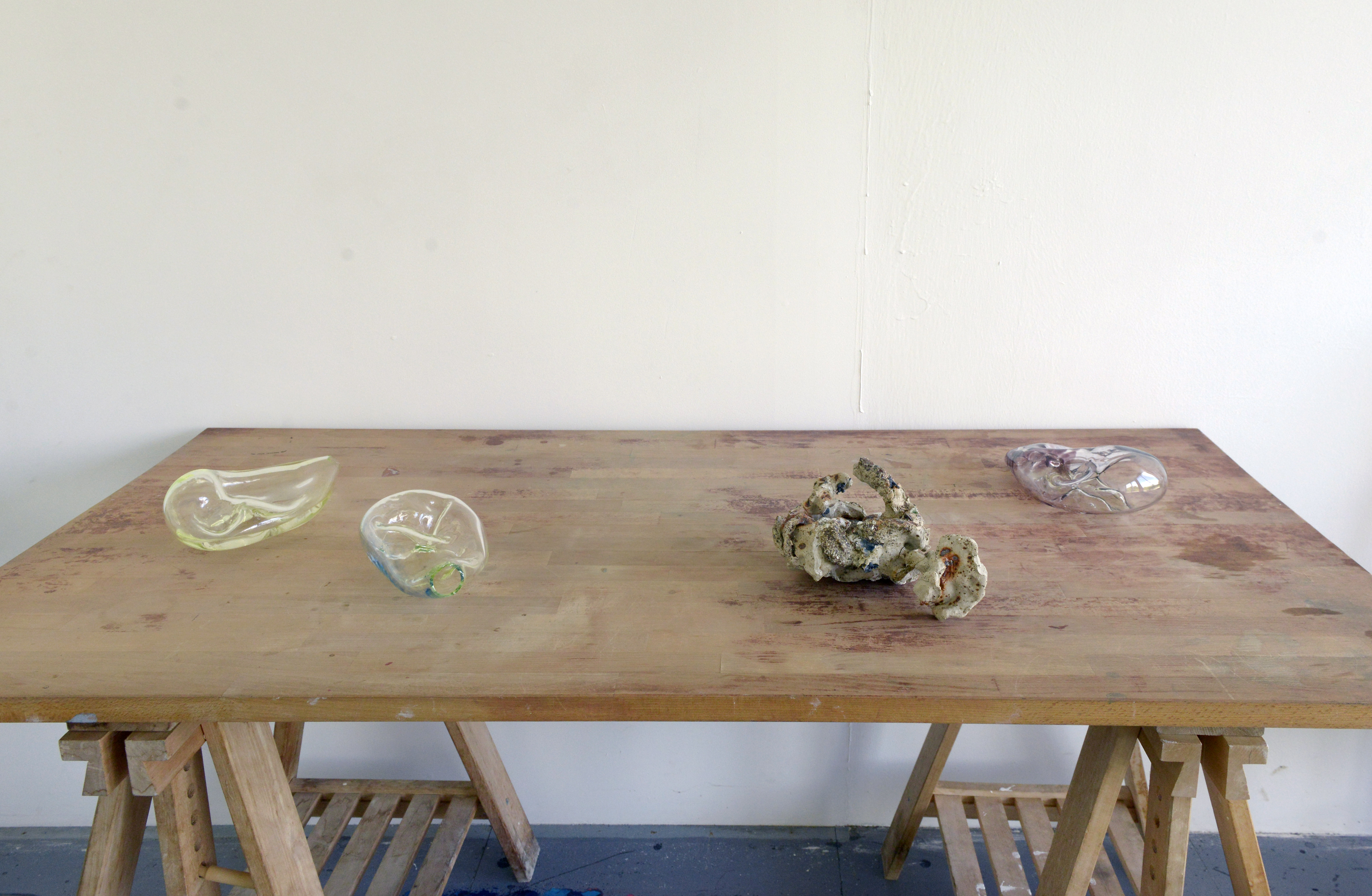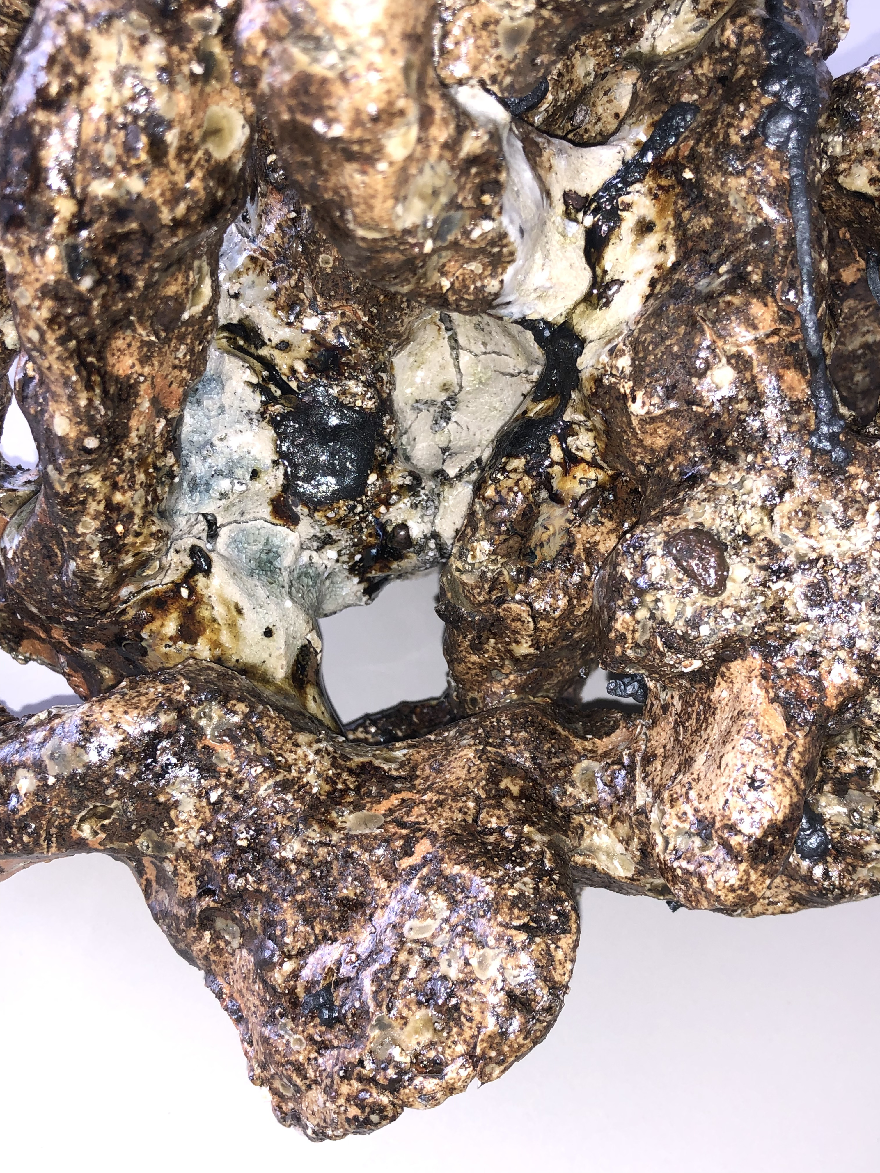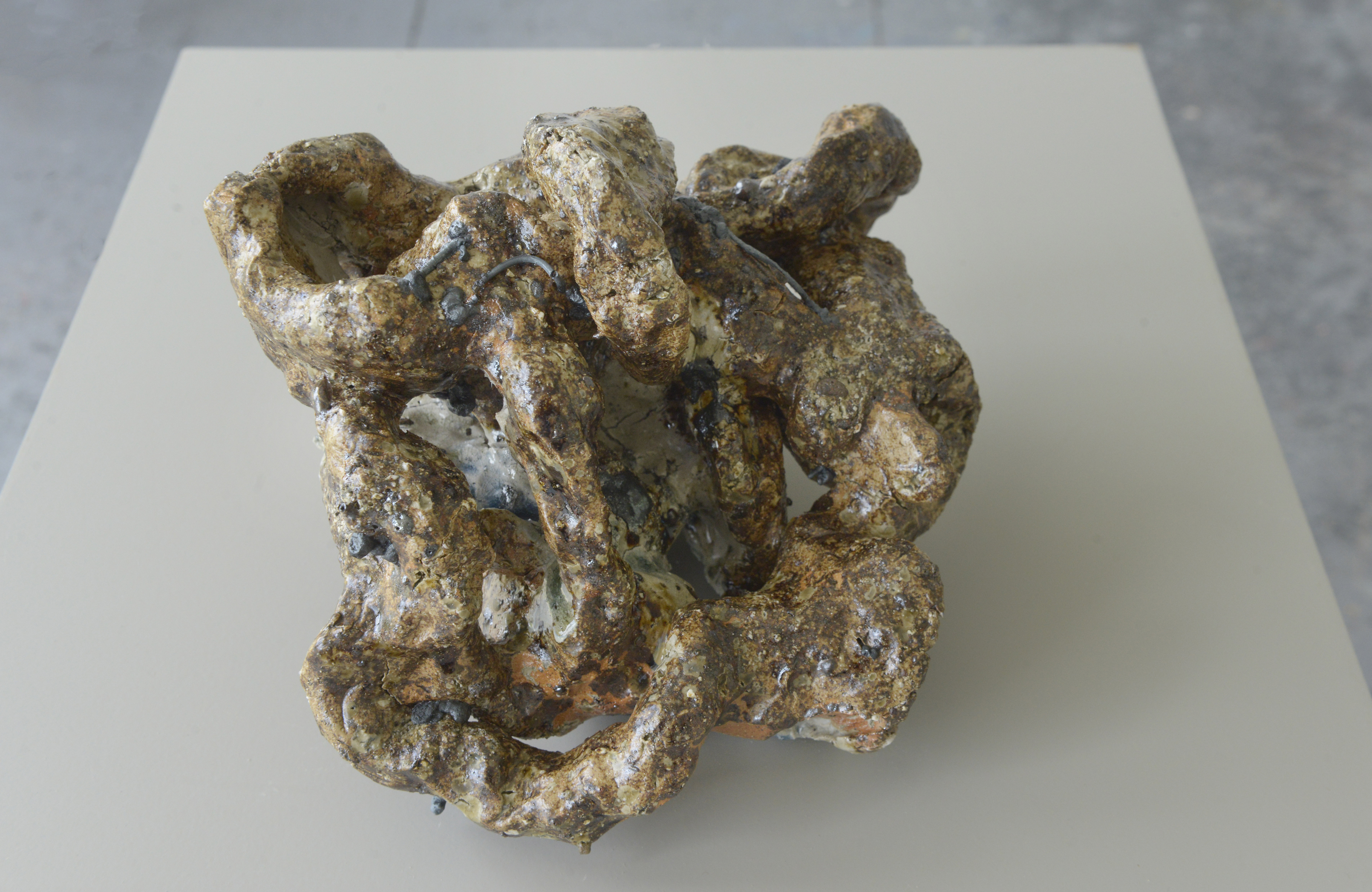 Laure’s current research on microbial memories stored in landscape and bodies raises questions about material flows, displacement and toxicity. Working in ceramics and glass, sediments from the loch have been indexed, fused or moulded with the debris of the compounds they contain, making their materiality, and for some their identity, visible through the transformation of heat. She has also experimented with a variety of glazes made from hyperaccumulator plants, a range of metals, and the remains of marine organisms. While the ceramic pieces reveal chemical residues, the glass pieces are imprints of loch waste, lost or mutagenic spaces.