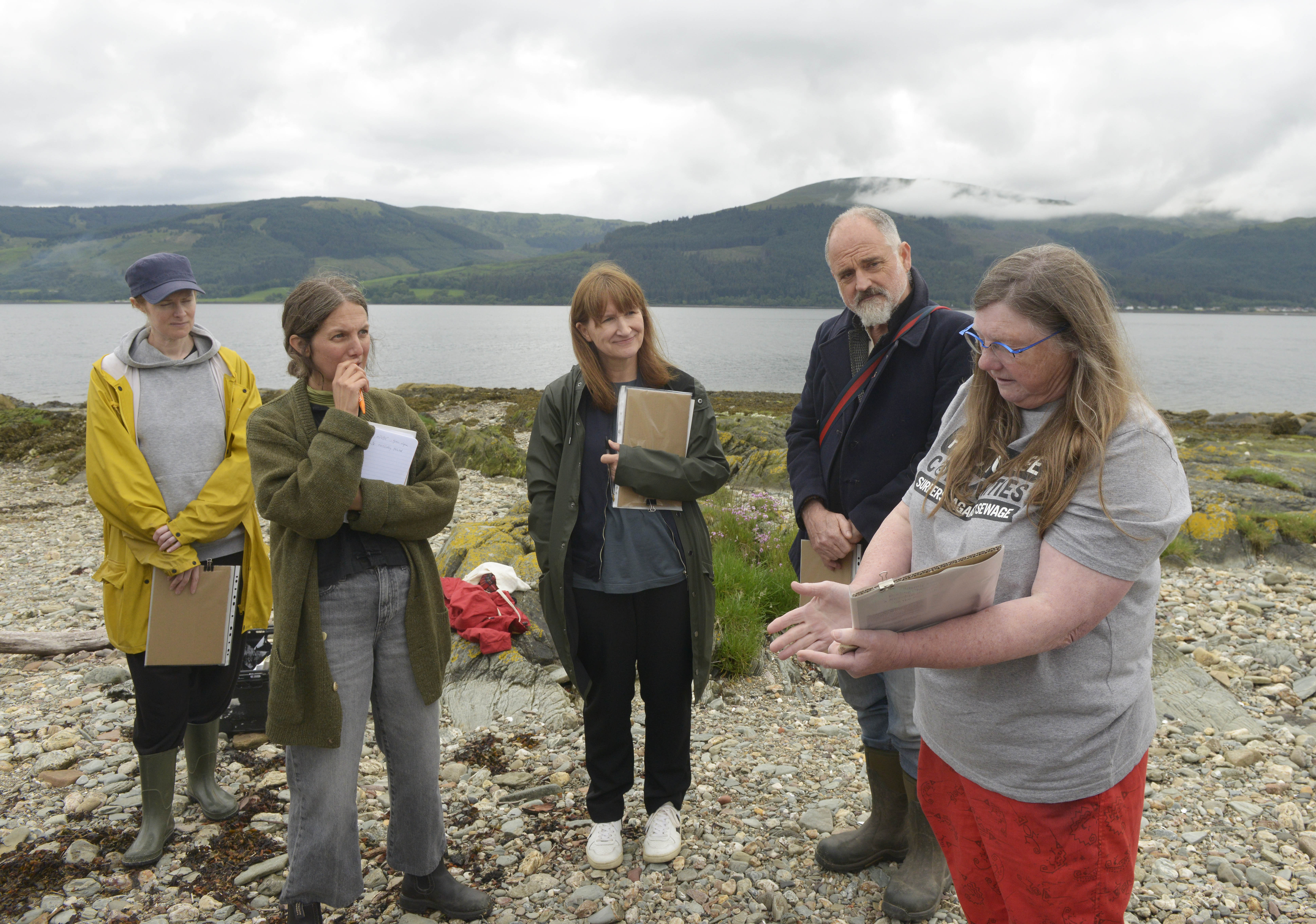 Alongside her sculptural experiments, Laure organised a citizen science group on the loch’s shoreline. This project was designed as a collaborative effort to observe the impact of the invisible flowing fluids in organisms and habitats, aiming to name and map the Rosneath Peninsula’s silent pollution and share knowledge by activating memories, oral and local history about matter out of place and their impact. This project will hopefully continue at a later date in the form of a publication.