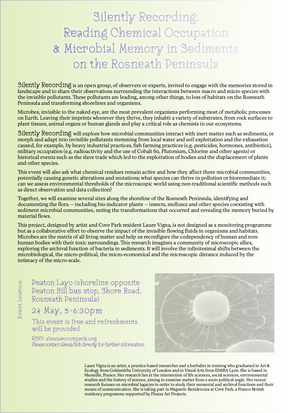 During Laure Vigna’s eight-week residency at Cove Park in Scotland her research has focused in part upon Loch Long, a sea loch on Argyll’s west coast. Cove Park’s site, which overlooks Loch Long, provided Laure with a base from which she could investigate the sediments of the loch - its chemical intricacies and legacies - as active assemblage and documentation.