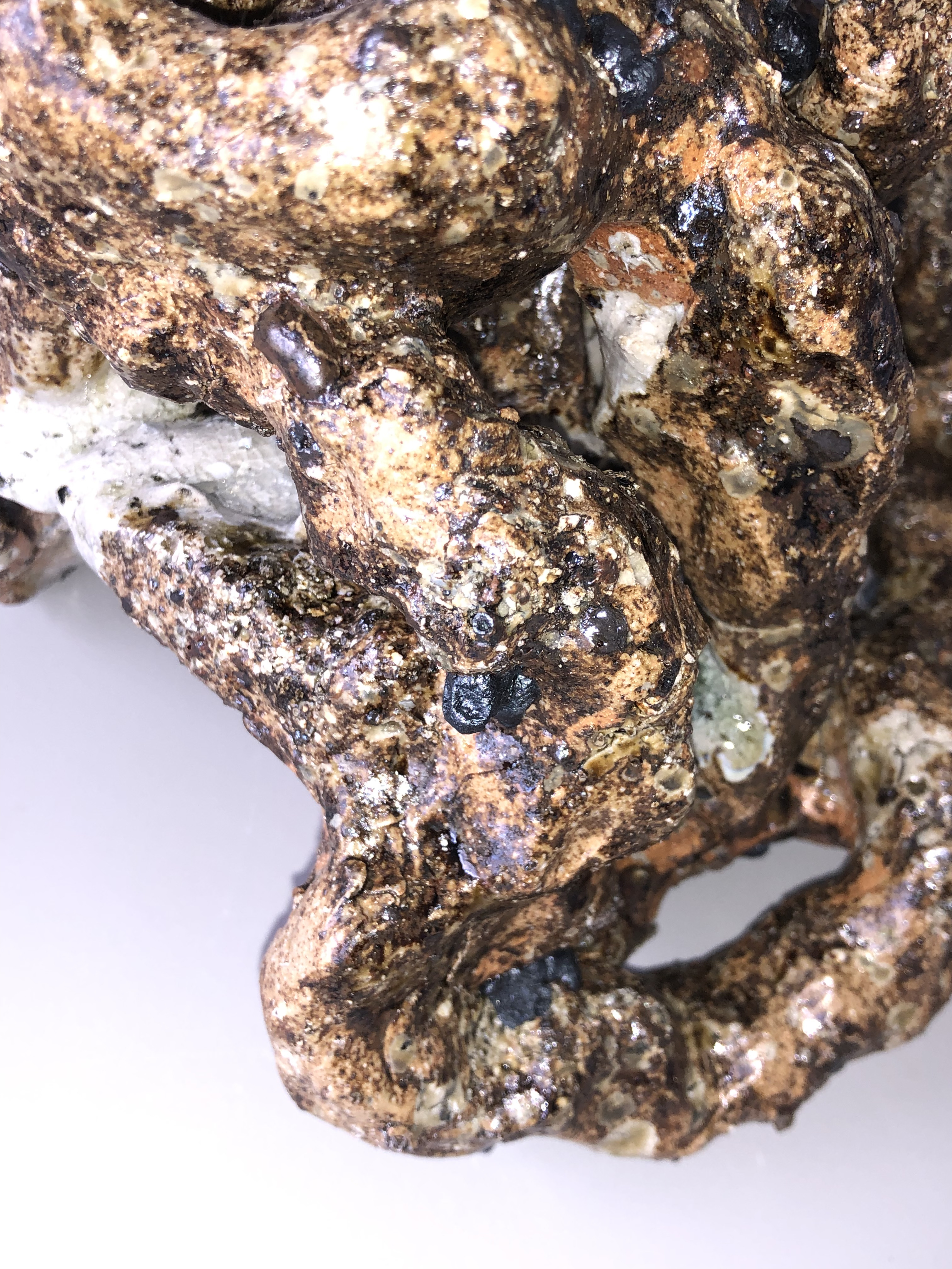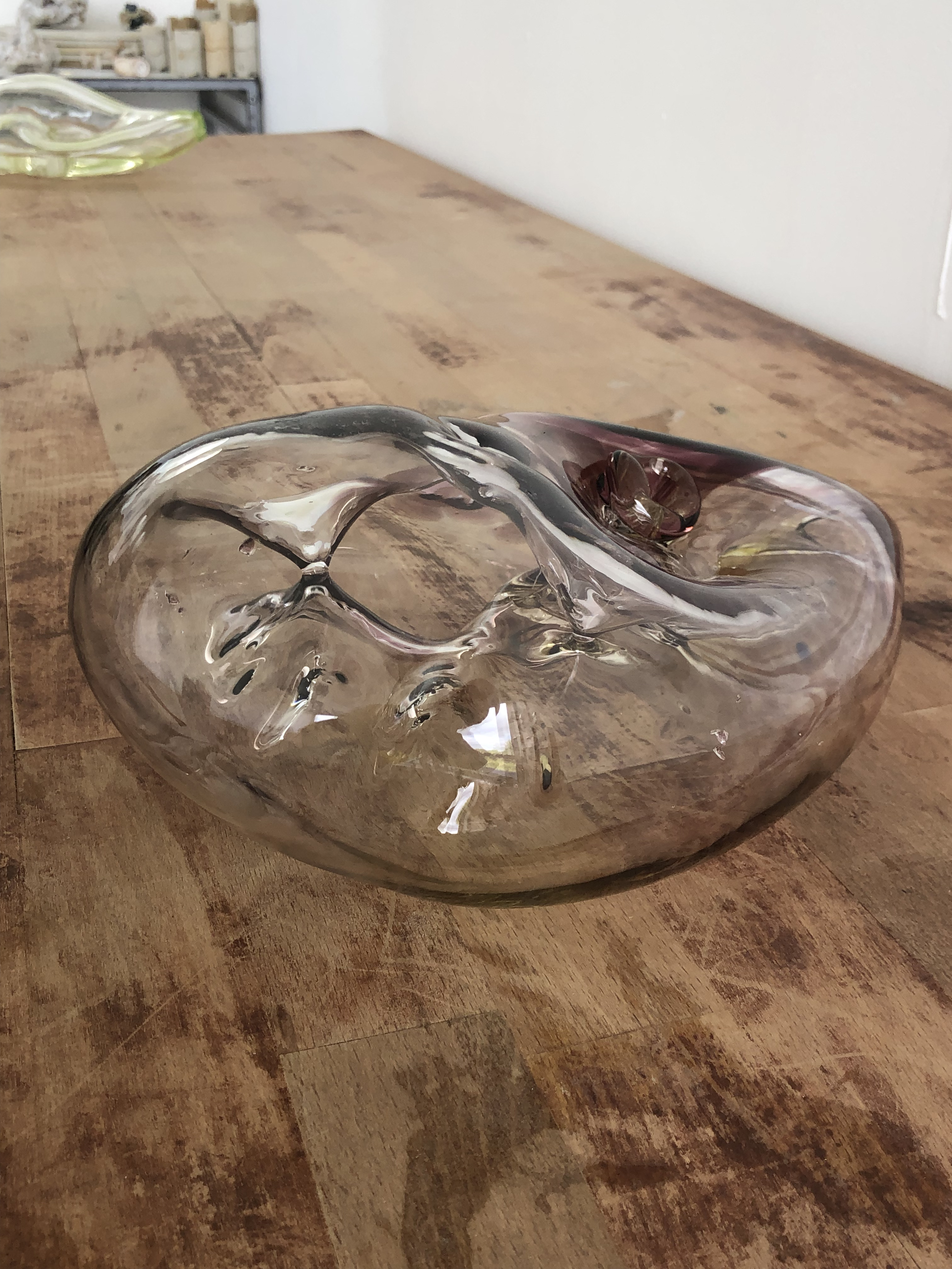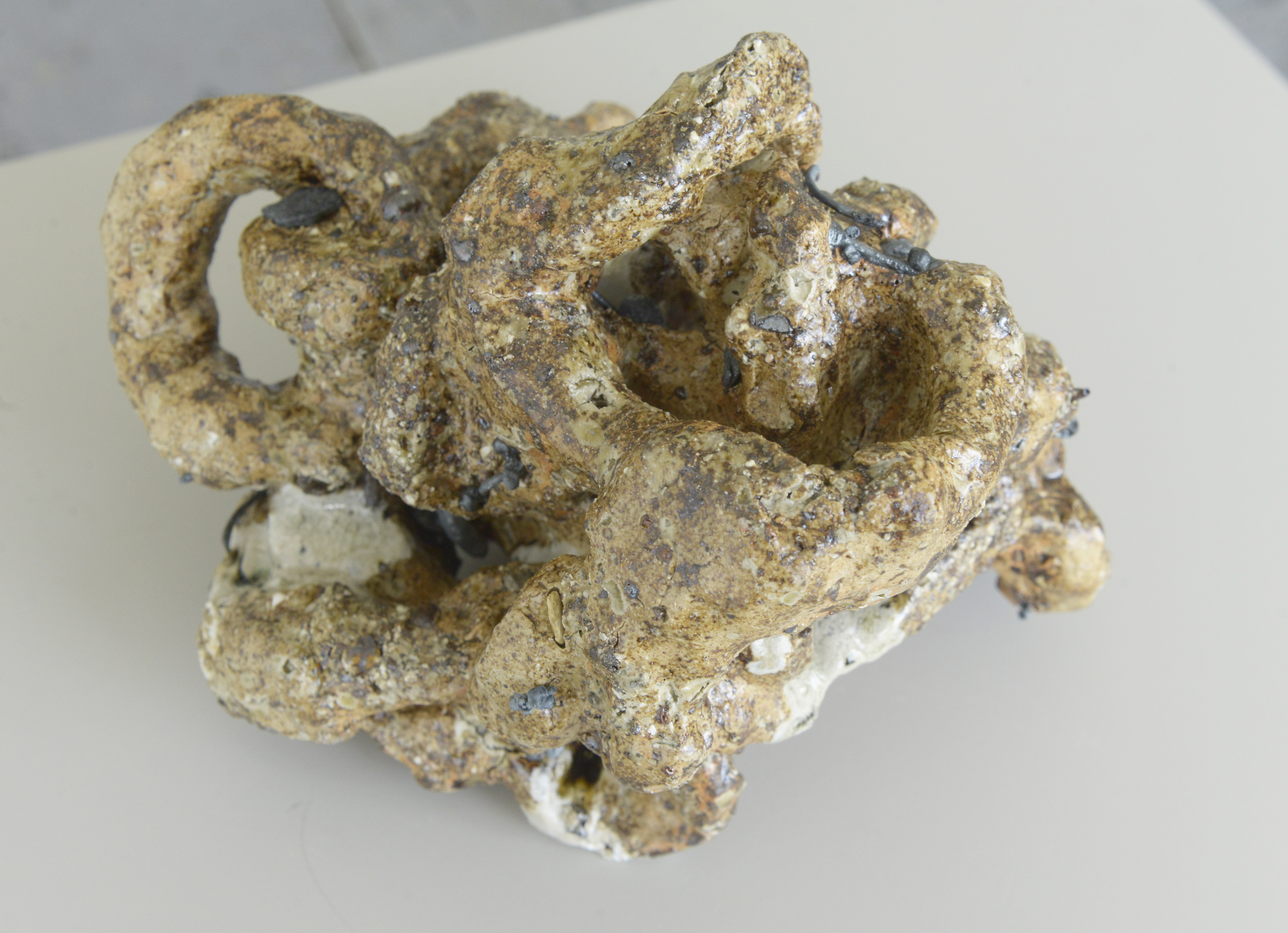 Laure’s current research on microbial memories stored in landscape and bodies raises questions about material flows, displacement and toxicity. Working in ceramics and glass, sediments from the loch have been indexed, fused or moulded with the debris of the compounds they contain, making their materiality, and for some their identity, visible through the transformation of heat. She has also experimented with a variety of glazes made from hyperaccumulator plants, a range of metals, and the remains of marine organisms. While the ceramic pieces reveal chemical residues, the glass pieces are imprints of loch waste, lost or mutagenic spaces.