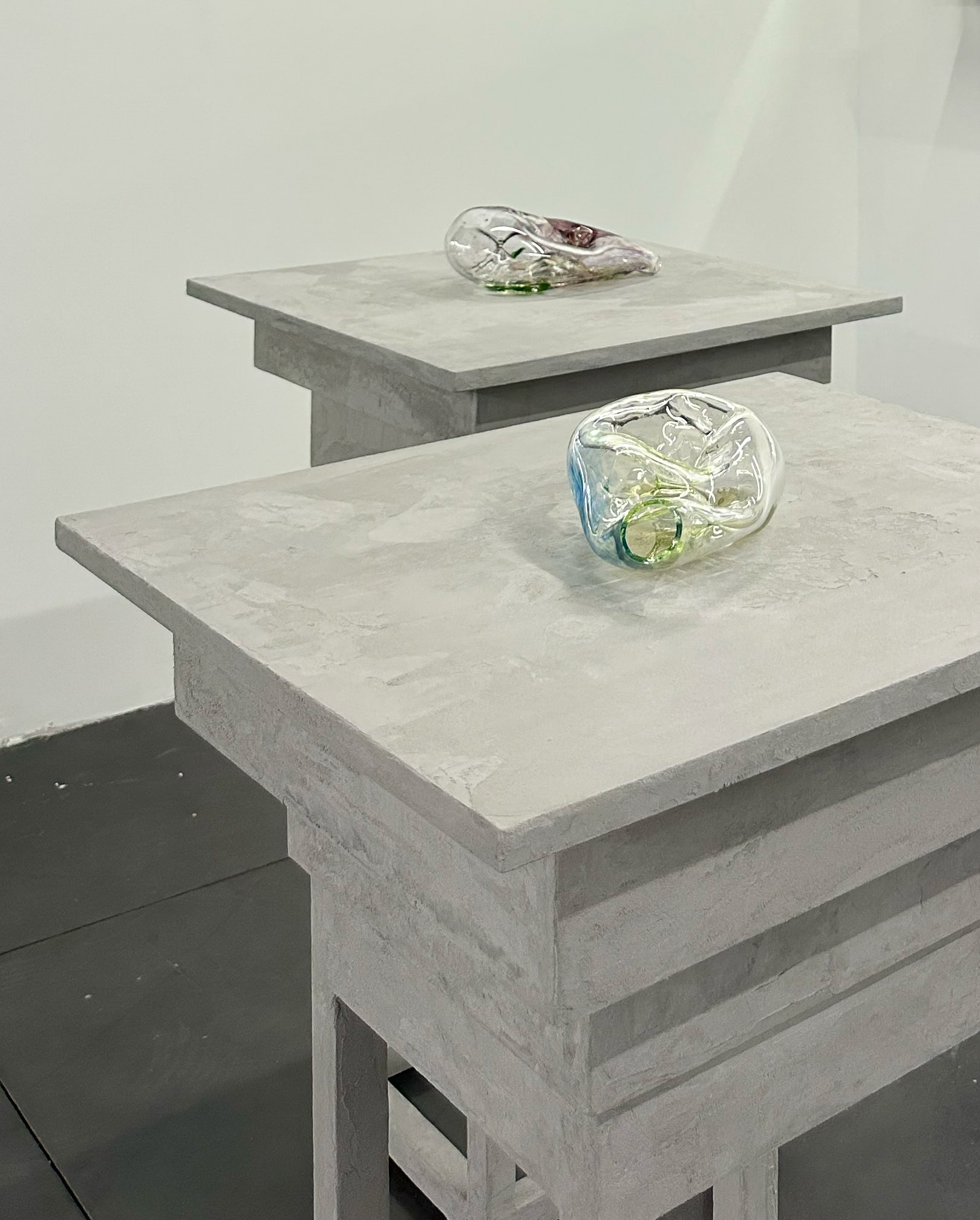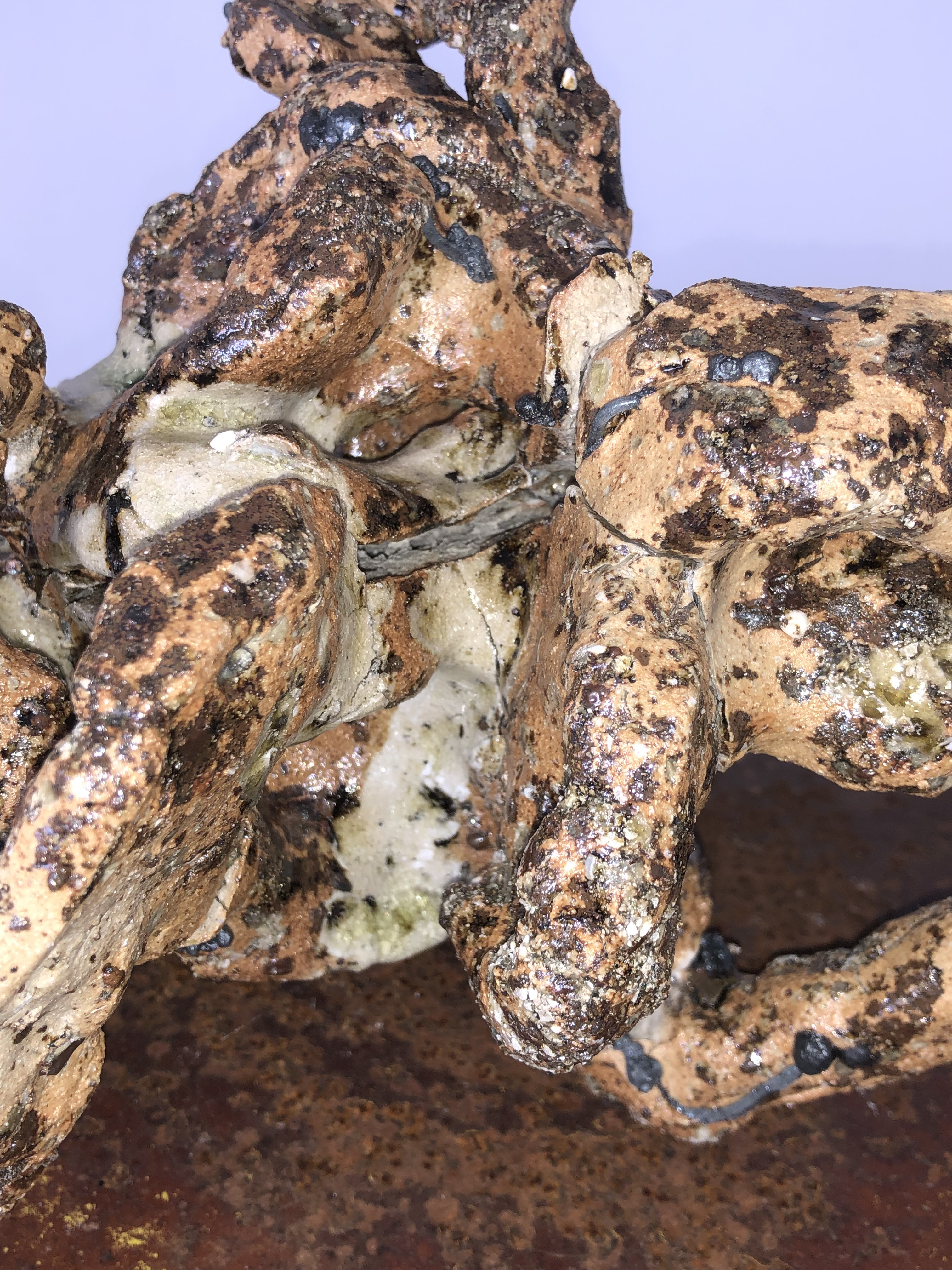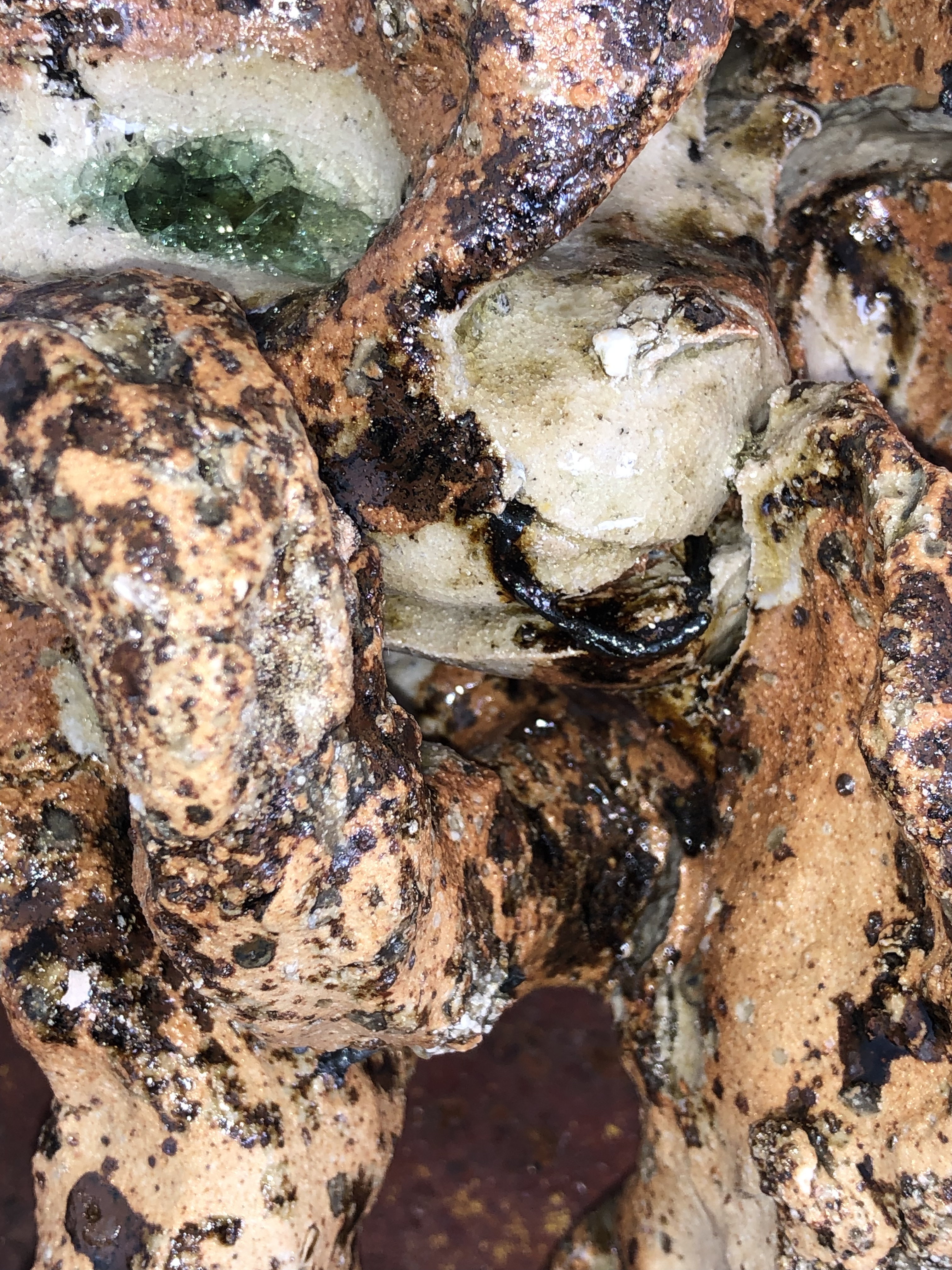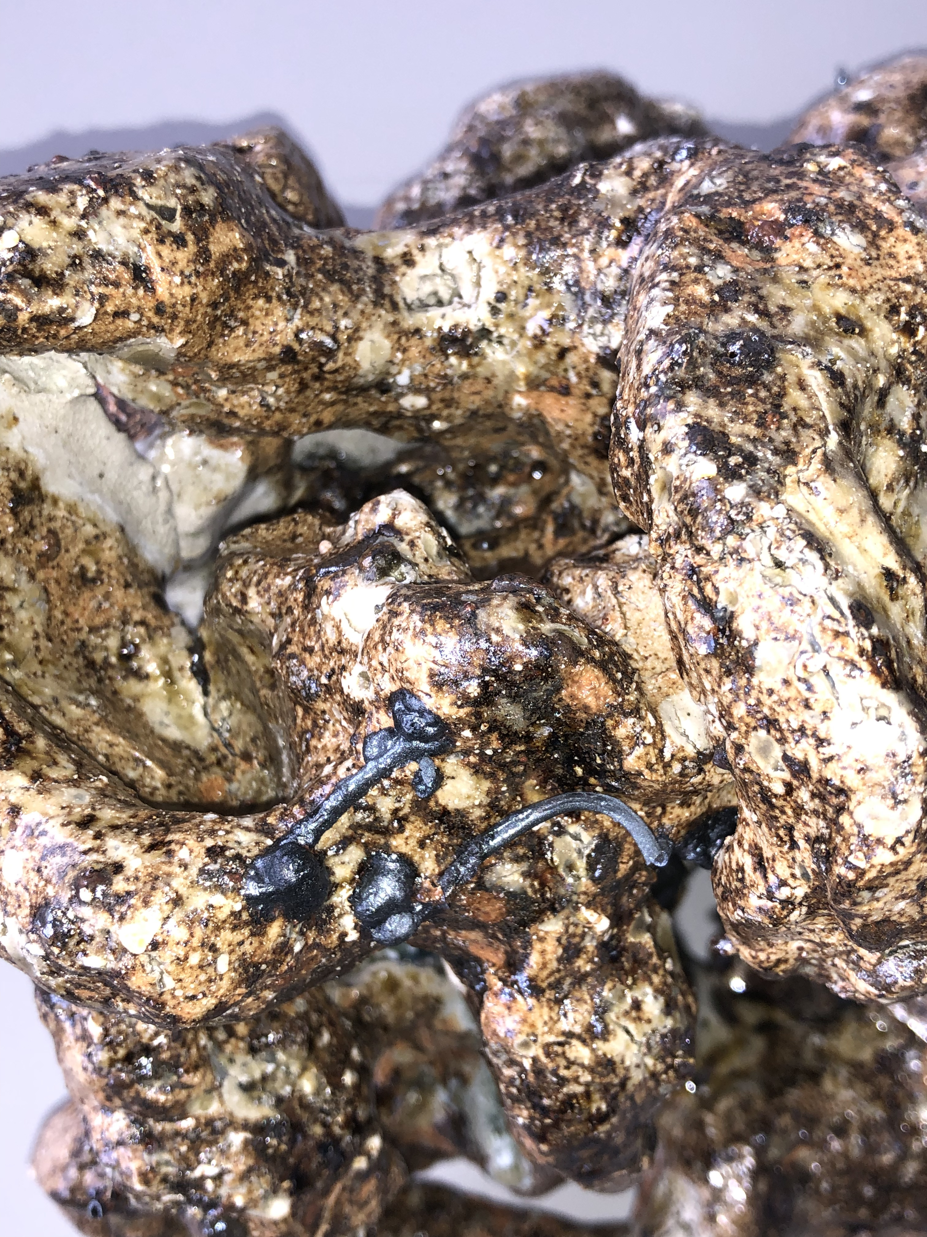 Laure’s current research on microbial memories stored in landscape and bodies raises questions about material flows, displacement and toxicity. Working in ceramics and glass, sediments from the loch have been indexed, fused or moulded with the debris of the compounds they contain, making their materiality, and for some their identity, visible through the transformation of heat. She has also experimented with a variety of glazes made from hyperaccumulator plants, a range of metals, and the remains of marine organisms. While the ceramic pieces reveal chemical residues, the glass pieces are imprints of loch waste, lost or mutagenic spaces.