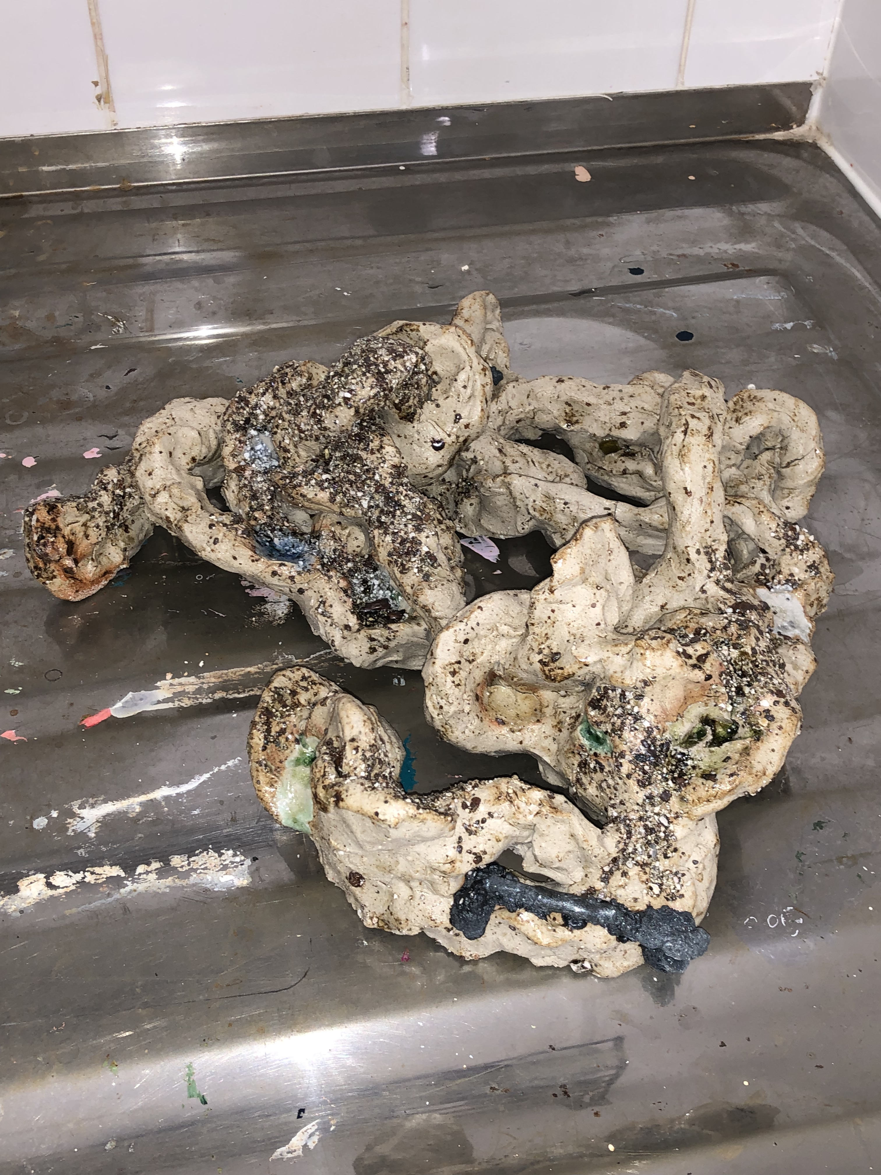Alongside her sculptural experiments, Laure organised a citizen science group on the loch’s shoreline. This project was designed as a collaborative effort to observe the impact of the invisible flowing fluids in organisms and habitats, aiming to name and map the Rosneath Peninsula’s silent pollution and share knowledge by activating memories, oral and local history about matter out of place and their impact. This project will hopefully continue at a later date in the form of a publication.