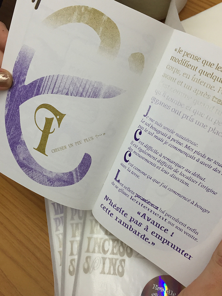 This publication is the result of a collaboration with graphic designer Roxanne Maillet and reveals a research conducted on typography and letters as “bodies, receptacles, and spaces".